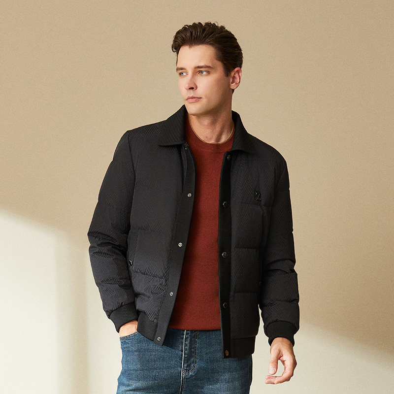 📚 商城同款杰尼威尼商务2025年冬季新款羽绒服男翻领印花保暖外套