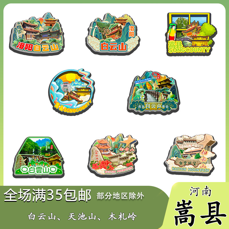 📚 河南嵩县白云山木札岭天池山磁吸木质冰箱贴旅游纪念品文创伴手礼