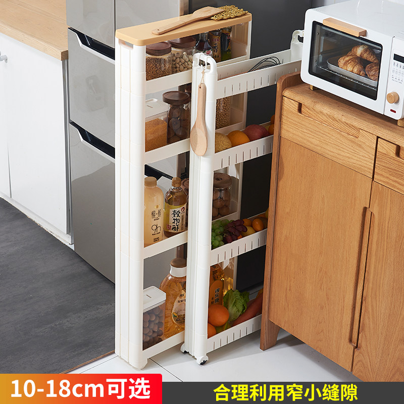 📚 9cm厨房夹缝收纳置物架落地多层超窄冰箱缝隙侧边小型储柜子带轮