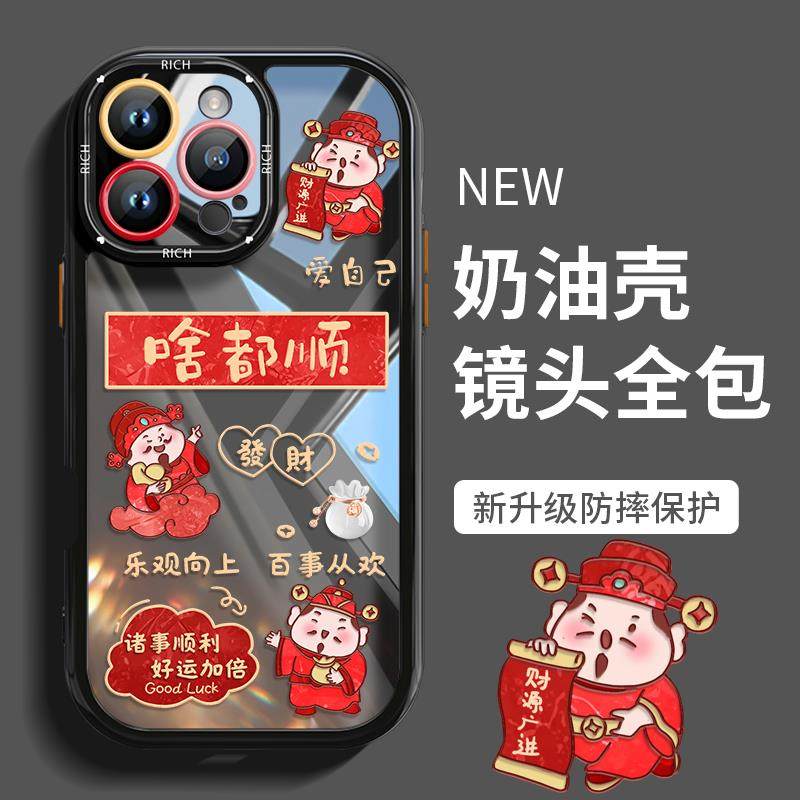 📚 焱焱啥都顺财神爷苹果16promax手机壳新款iPhone17透明硅胶15中国风14时尚卡通13高级感12镜头全包plus创意过