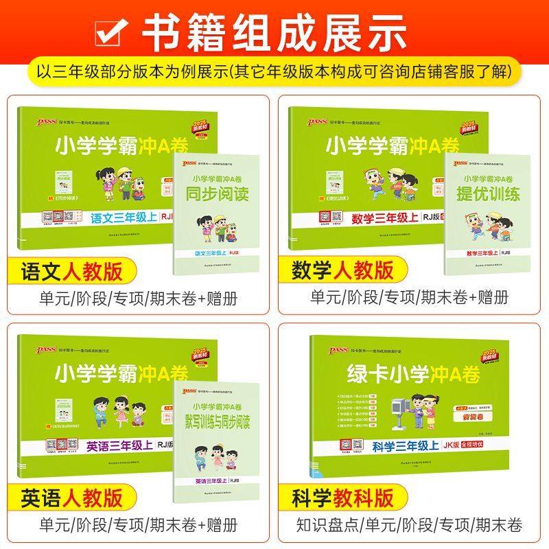 📚 备考2026春秋小学学霸冲a卷人教版6354青岛版一二三四五六年级123456上下册语文数学英语单元测试卷全套同步训练题练习期末模拟卷
