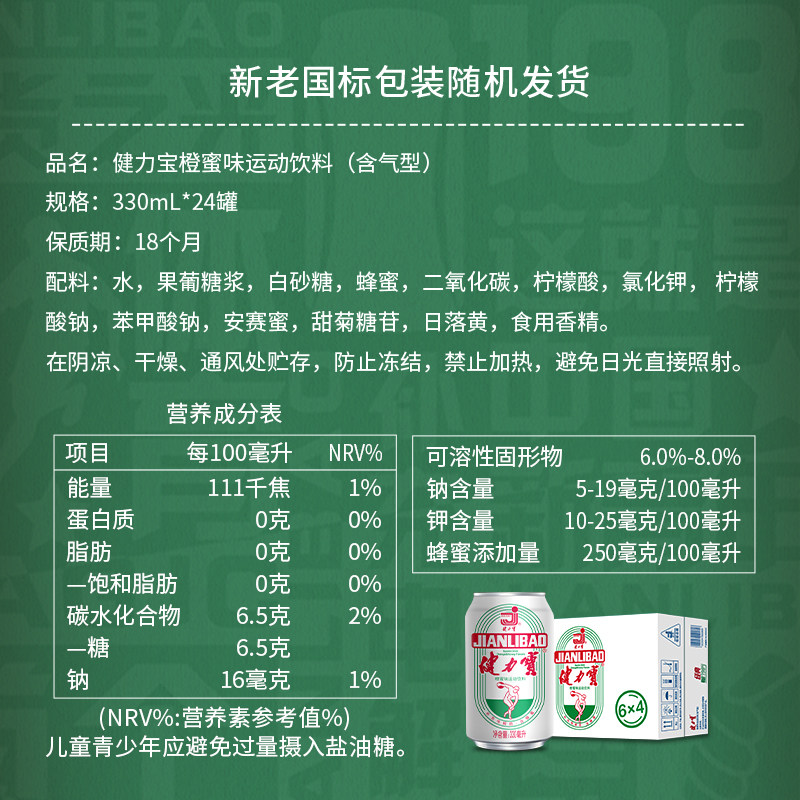 📚 健力宝经典橙蜜味330ML*24罐整箱电解质饮料气泡家庭聚会酸甜解腻