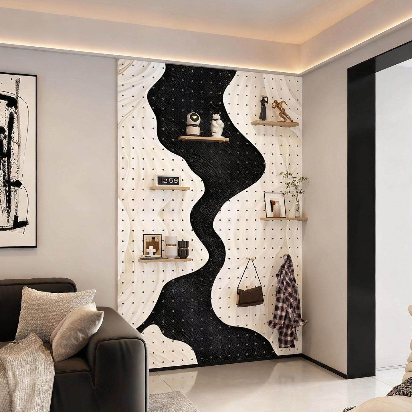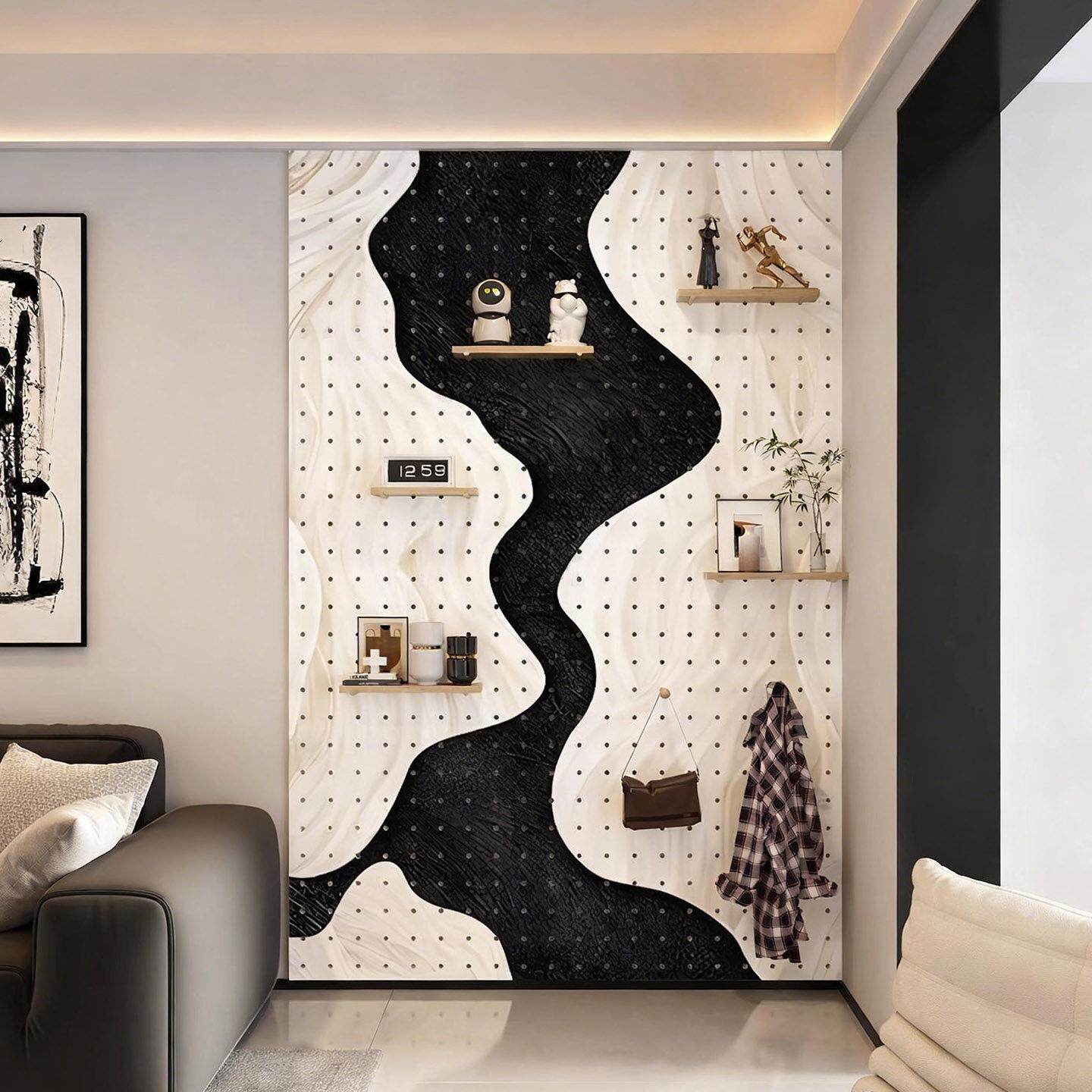 📚 抽象风板块实木洞洞板造型墙玄关入户门家用收纳可定制装饰置物架