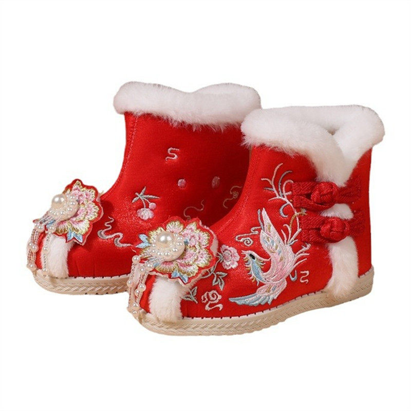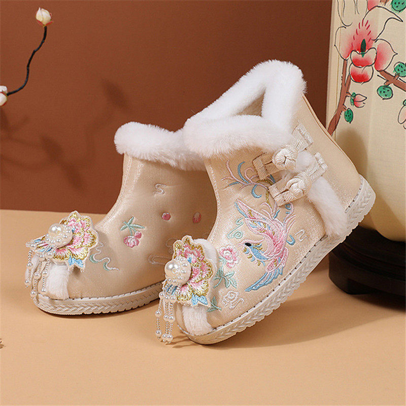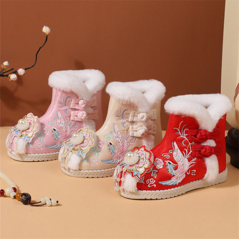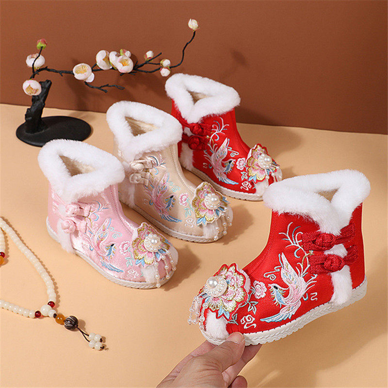 📚 女童绣花鞋加绒棉鞋儿童汉服鞋中国风雪地靴女童民族风古装布鞋子