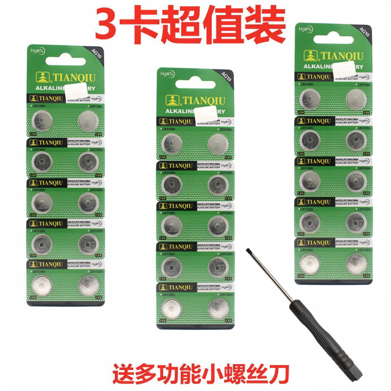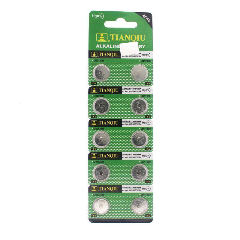 📚 天球AG10纽扣电池LR1130H/389A计算器LR54/390/189电子手表电池