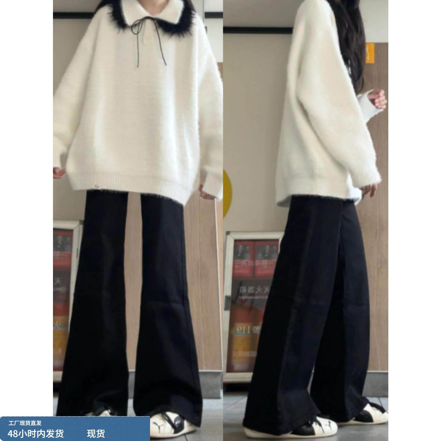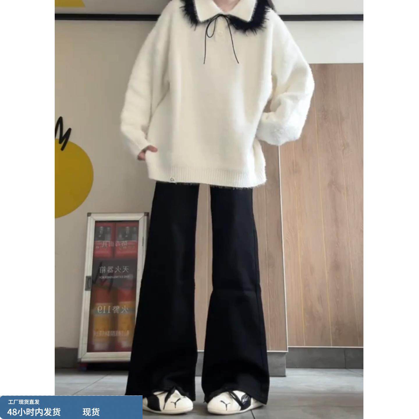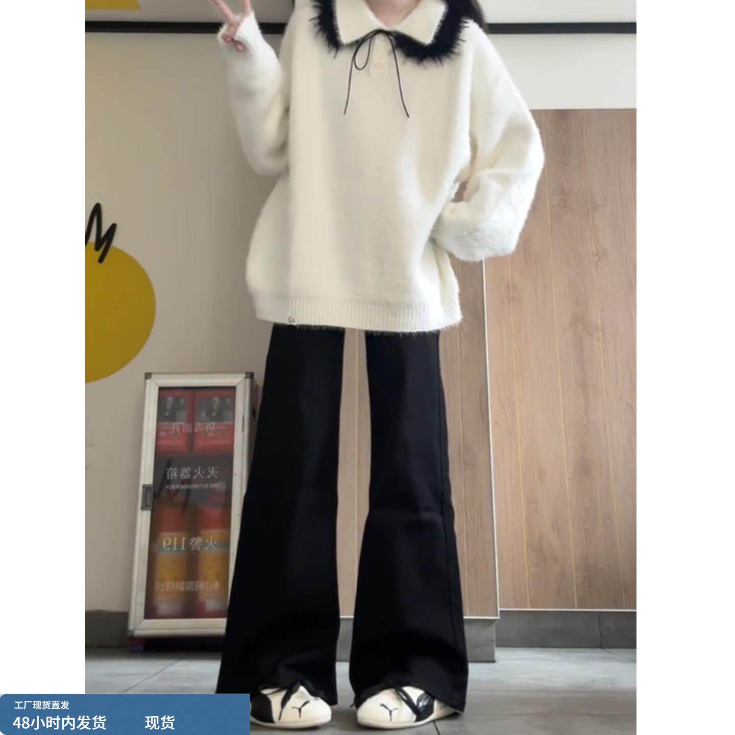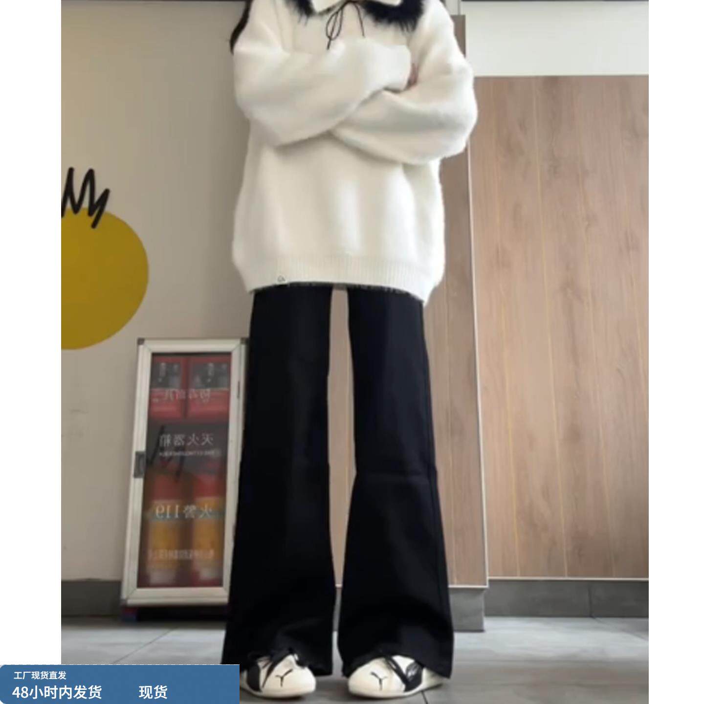 📚 黑色加绒加厚牛仔裤女秋冬季新款初中高中学生低腰显瘦阔腿微喇叭