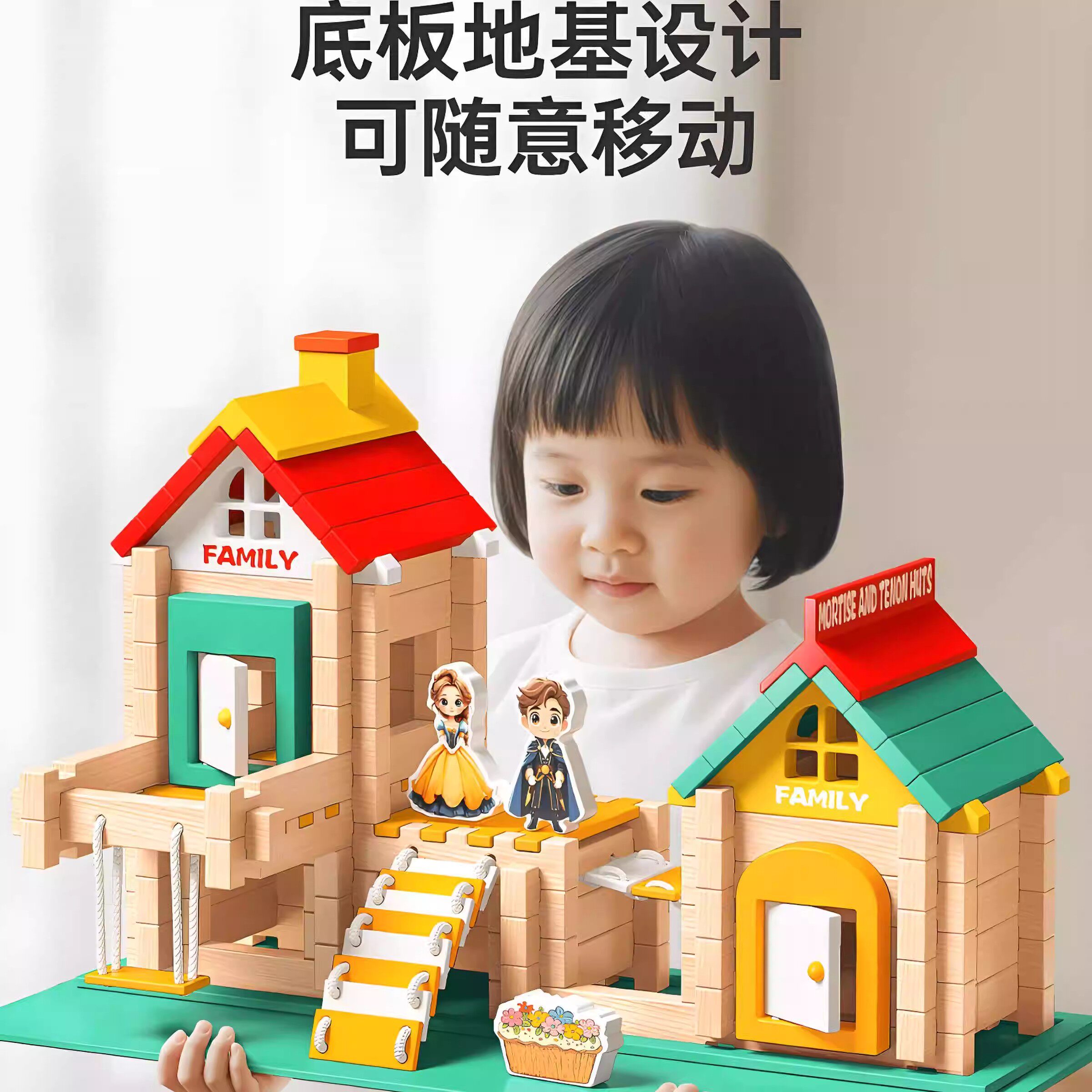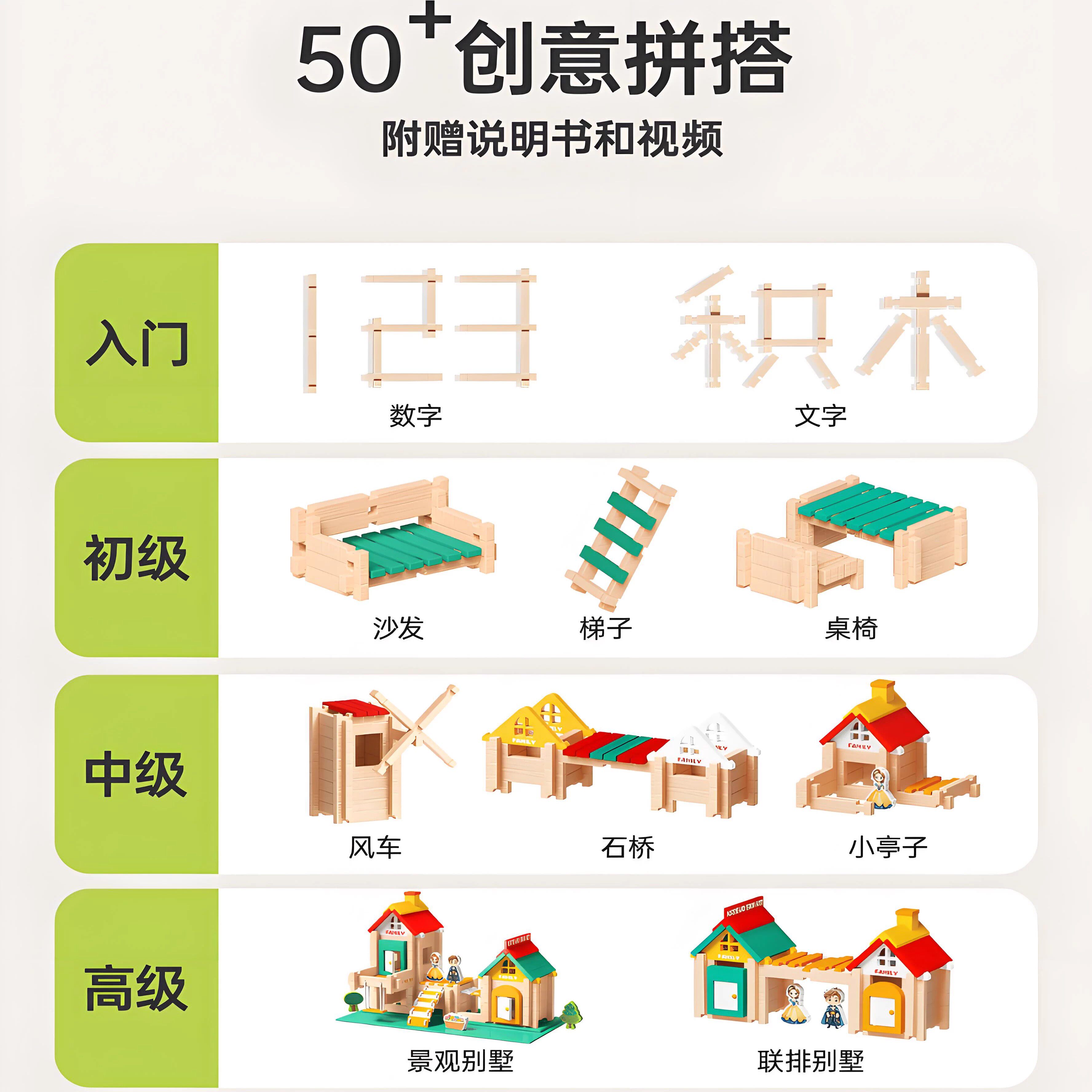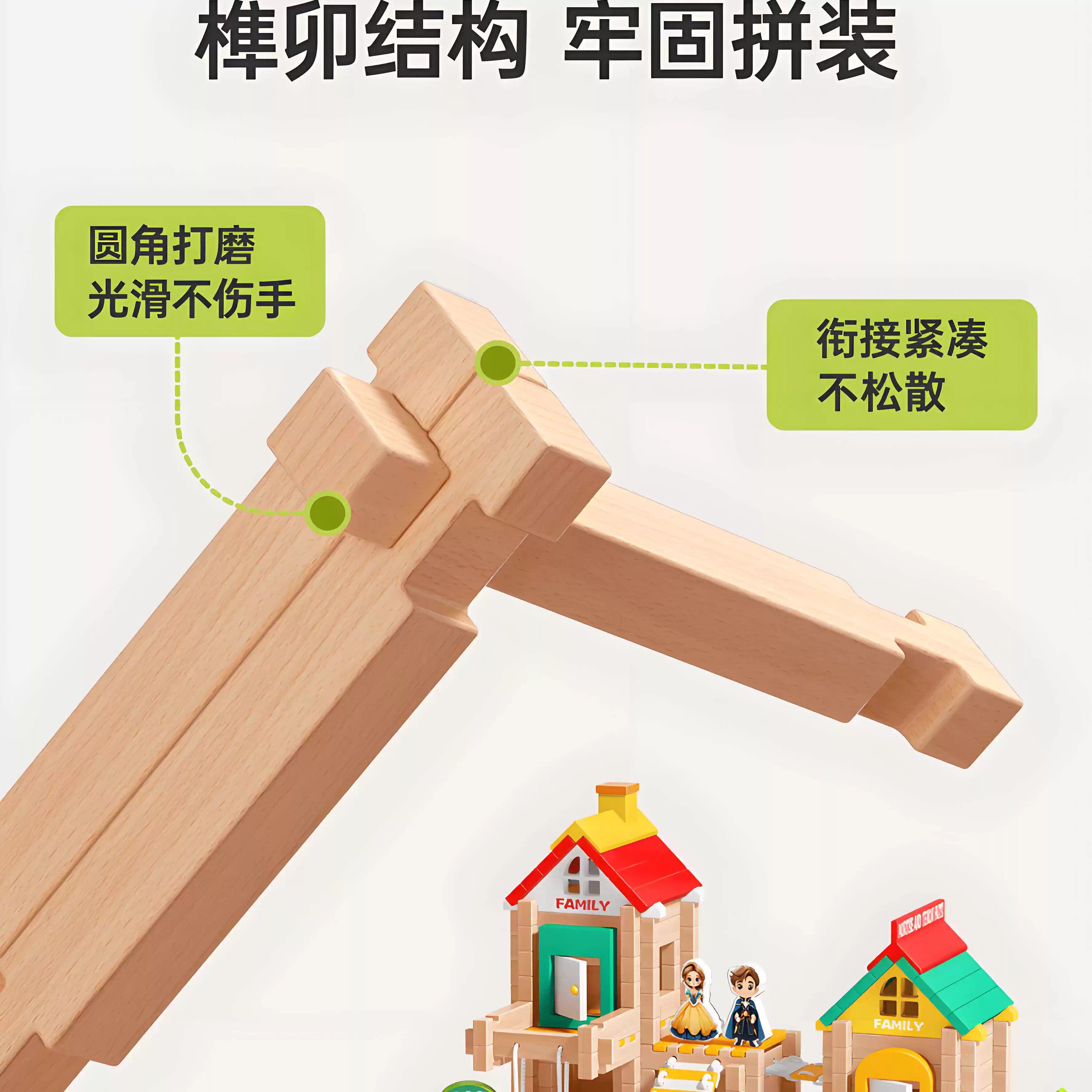 📚 德国GM益智鲁班榫卯积木玩具小建筑师大颗粒木制结构拼装儿童搭房