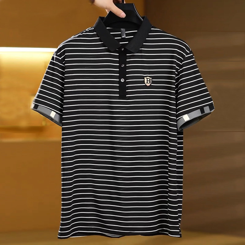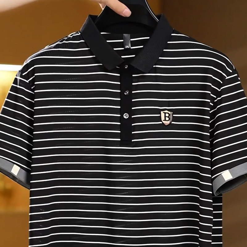 📚 胖子男士加肥加大码短袖翻领T恤有领冰丝透气弹力体恤polo衫特大