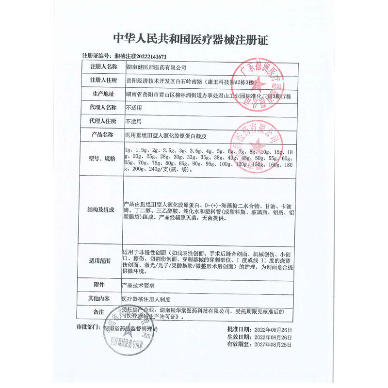 📚 法兰度医用重组Ⅲ型人源化胶原蛋白凝胶创口擦伤切割伤创面烧烫伤