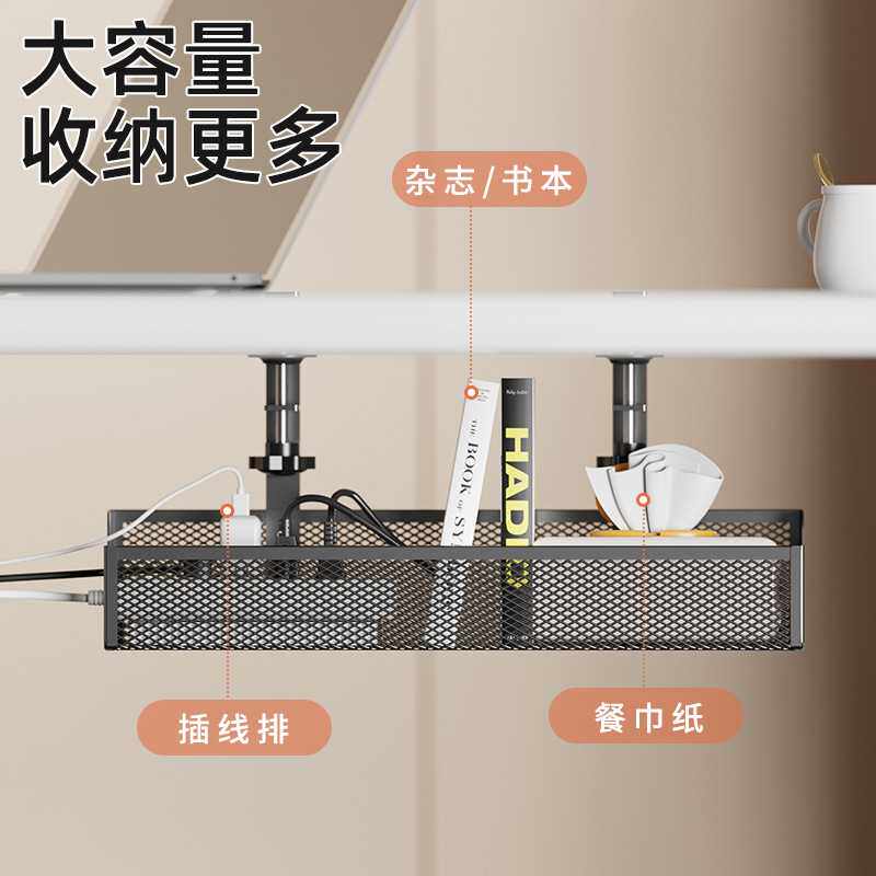 📚 免打孔桌下理线器家用插座线束网状挂架篮桌面整理支架收纳置物架