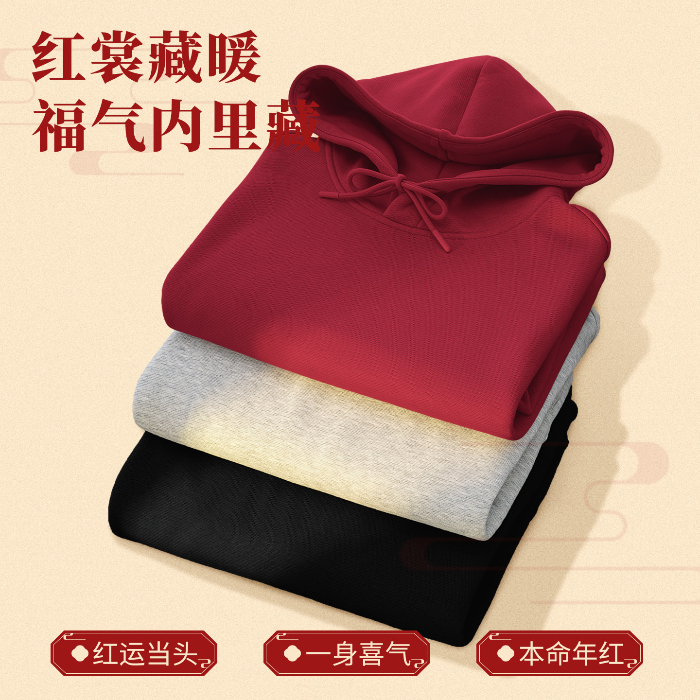 📚 马克华菲酒红色套装男2026本命年连帽卫衣男款加绒加厚男士卫裤X