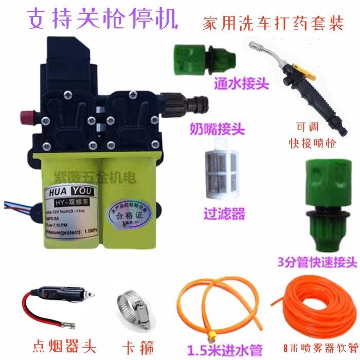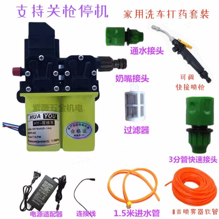 📚 智能关枪停机洗车泵果树喷药泵隔膜泵家用自吸抽水泵12V双核水泵