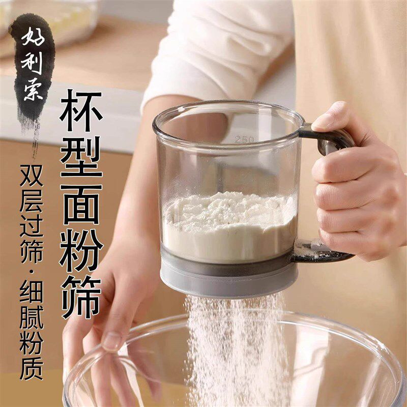 📚 Semi-automatic flour sifter handheld kitchen sieve mesh filt