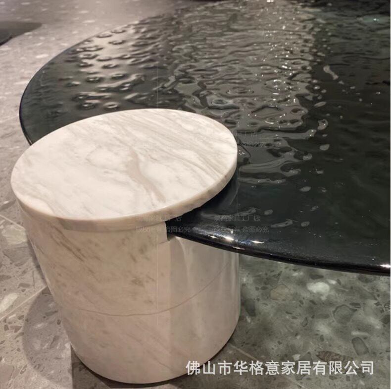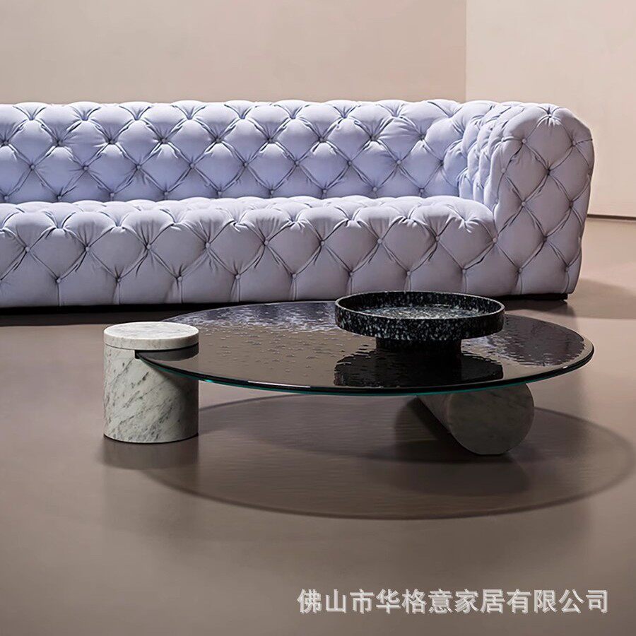 📚 BAXTER VERRE PARTICULIER意式极简设计师天然大理石水纹玻璃茶几