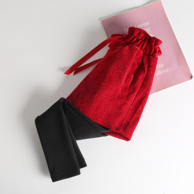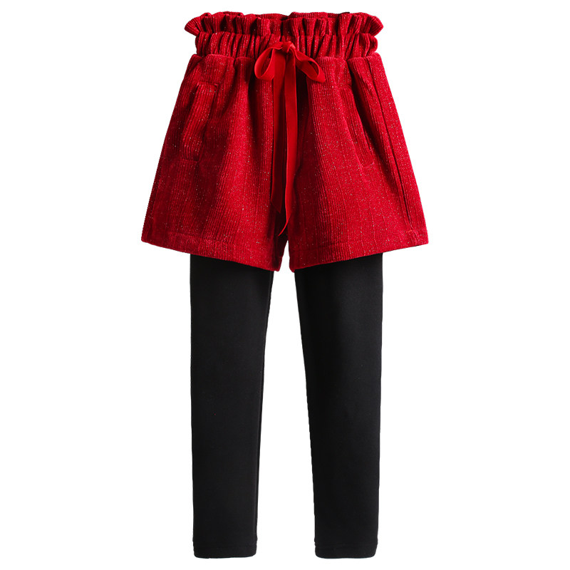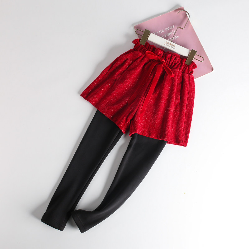 📚 红色过年服裤子女童加绒加厚打底裤裙冬款短款儿童女宝假两件棉裤