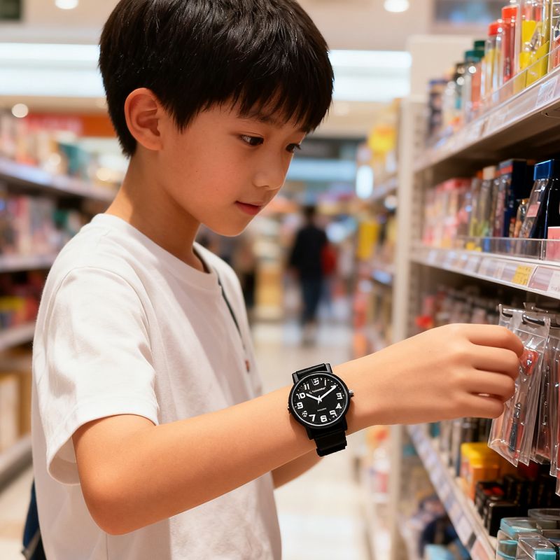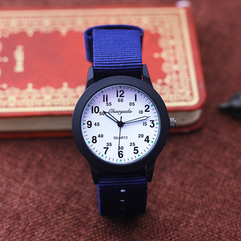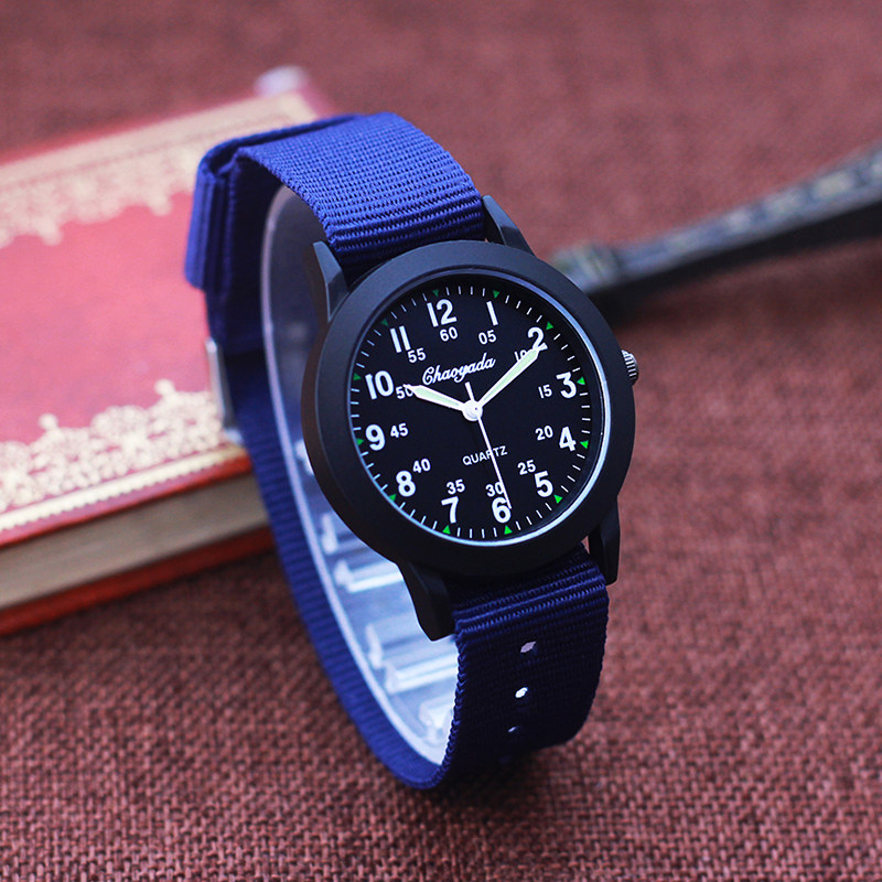 📚 简约清晰数字夜光小男孩透气帆布手表学生石英防水电子儿童潮腕表