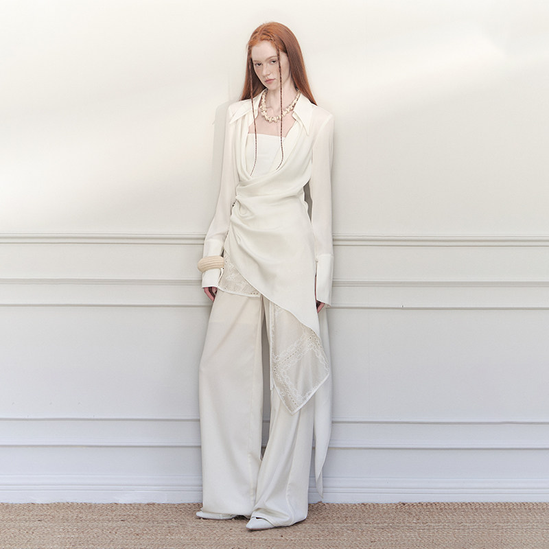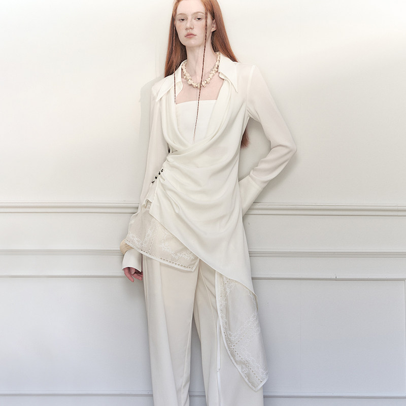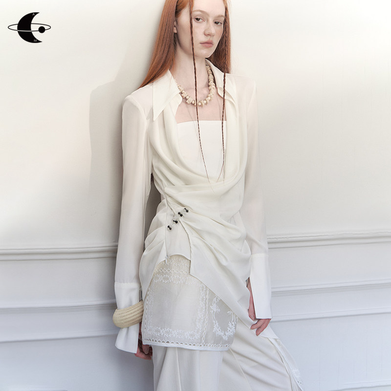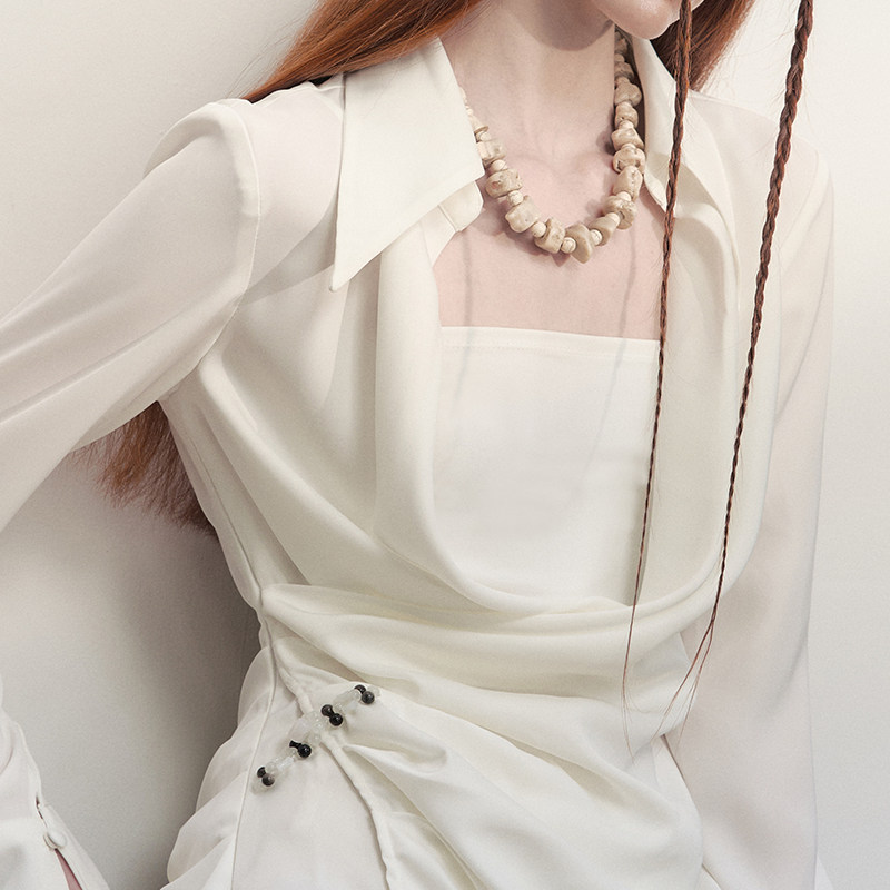 📚 创世纪元【褶叙流光】中式手工盘扣缎面荡领衬衫法式气质修身上衣