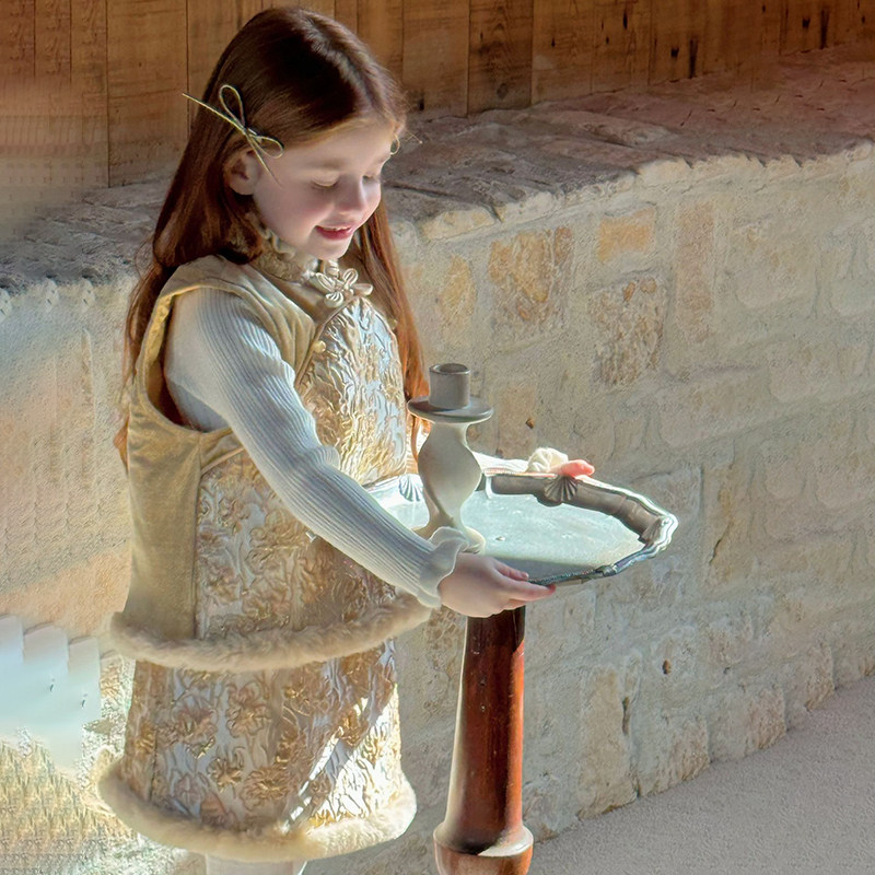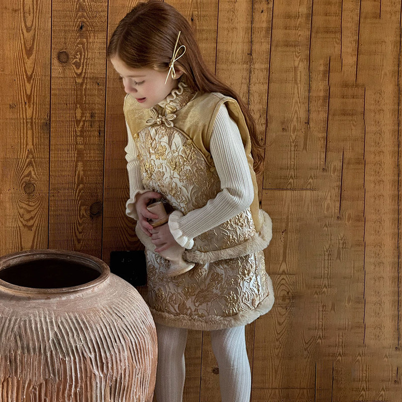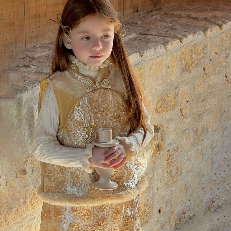 📚 女童新中式夹棉马甲背心旗袍套裙冬季儿童国风富贵花开新年拜年服