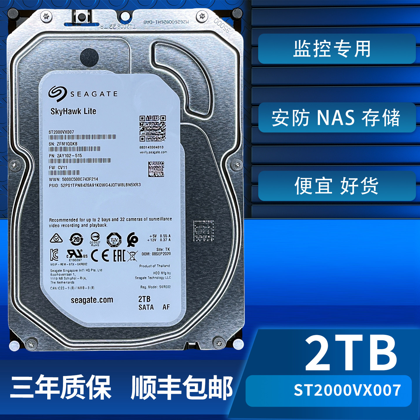 📚 希捷ST2000VX007监控2TB垂直机械硬盘2TB监控硬盘监控专用