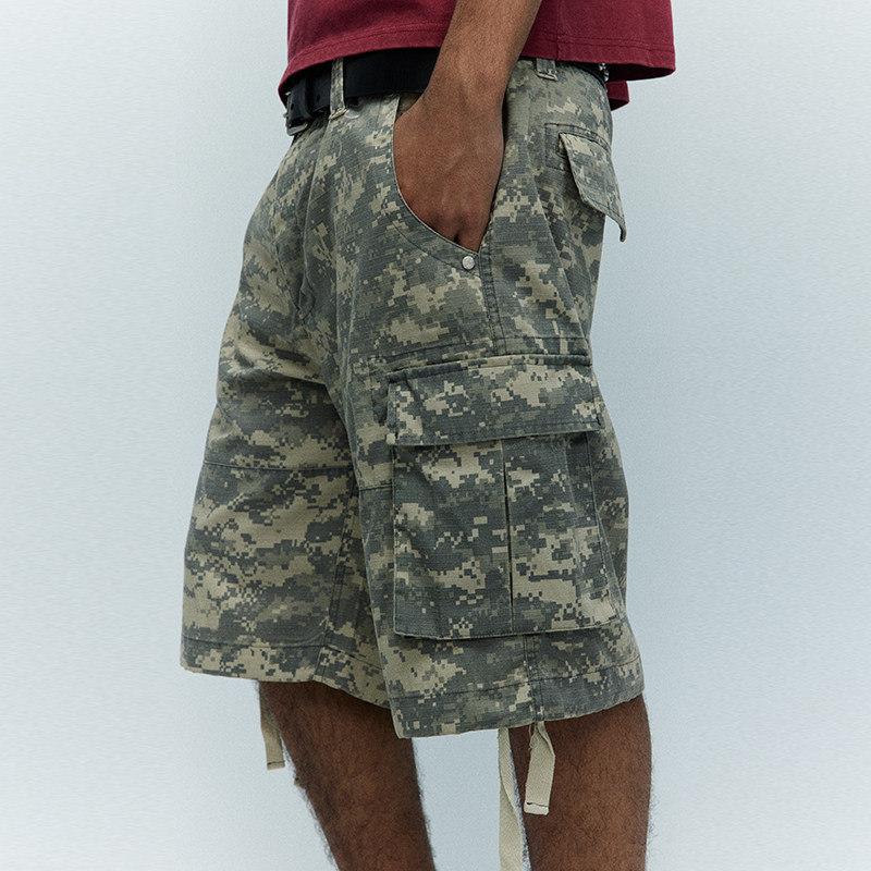 📚 CRICLE CAGE环洞 ACU数码迷彩飘带街头夏季六分工装复古做旧短裤