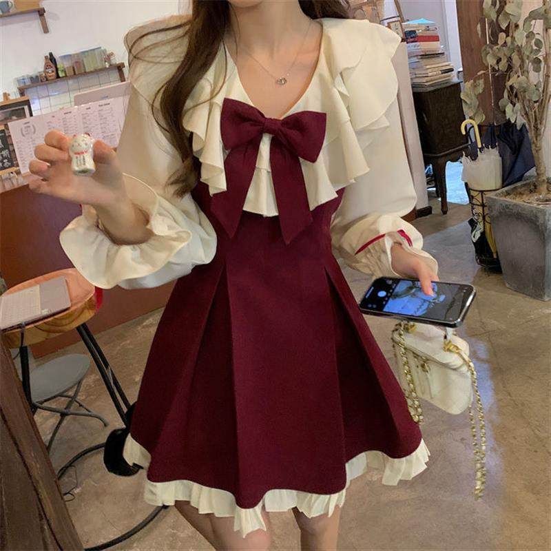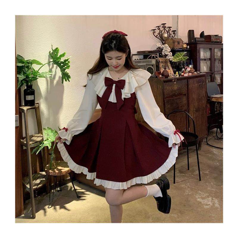 📚 圣诞红色吊带连衣裙两件套春秋新款设计感小众蝴蝶结衬衫套装女