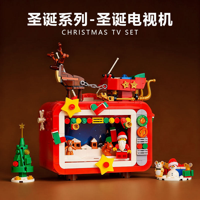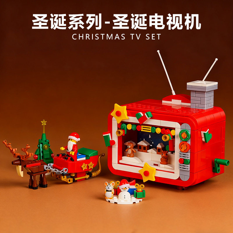 📚 圣诞电视机圣诞老人礼物积木益智玩具2025新款适用乐高人仔场景