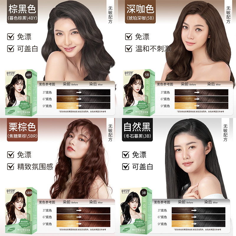 📚 【冷狗专属】章华汉草无敏小绿盒染发膏染发剂遮盖白自己在家正品