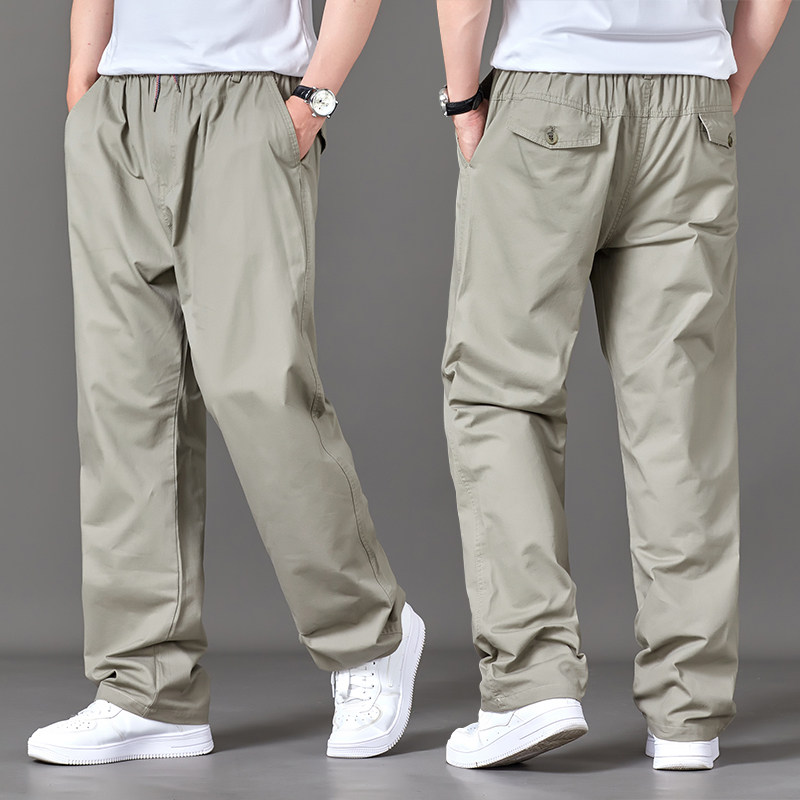 📚 秋季薄款直筒裤纯棉休闲裤男士宽松中年加大码运动裤长裤子胖