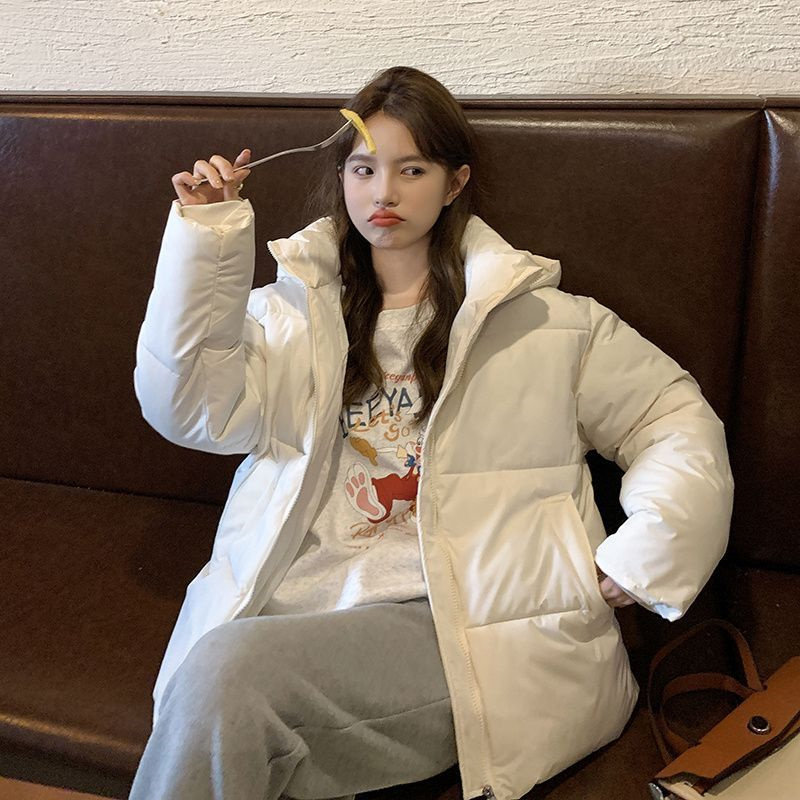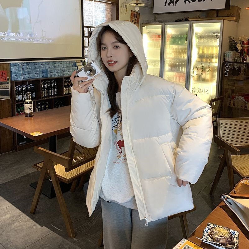 📚 美式羽绒棉服外套女冬小个子加厚连帽立领拉链开衫面包服保暖上装