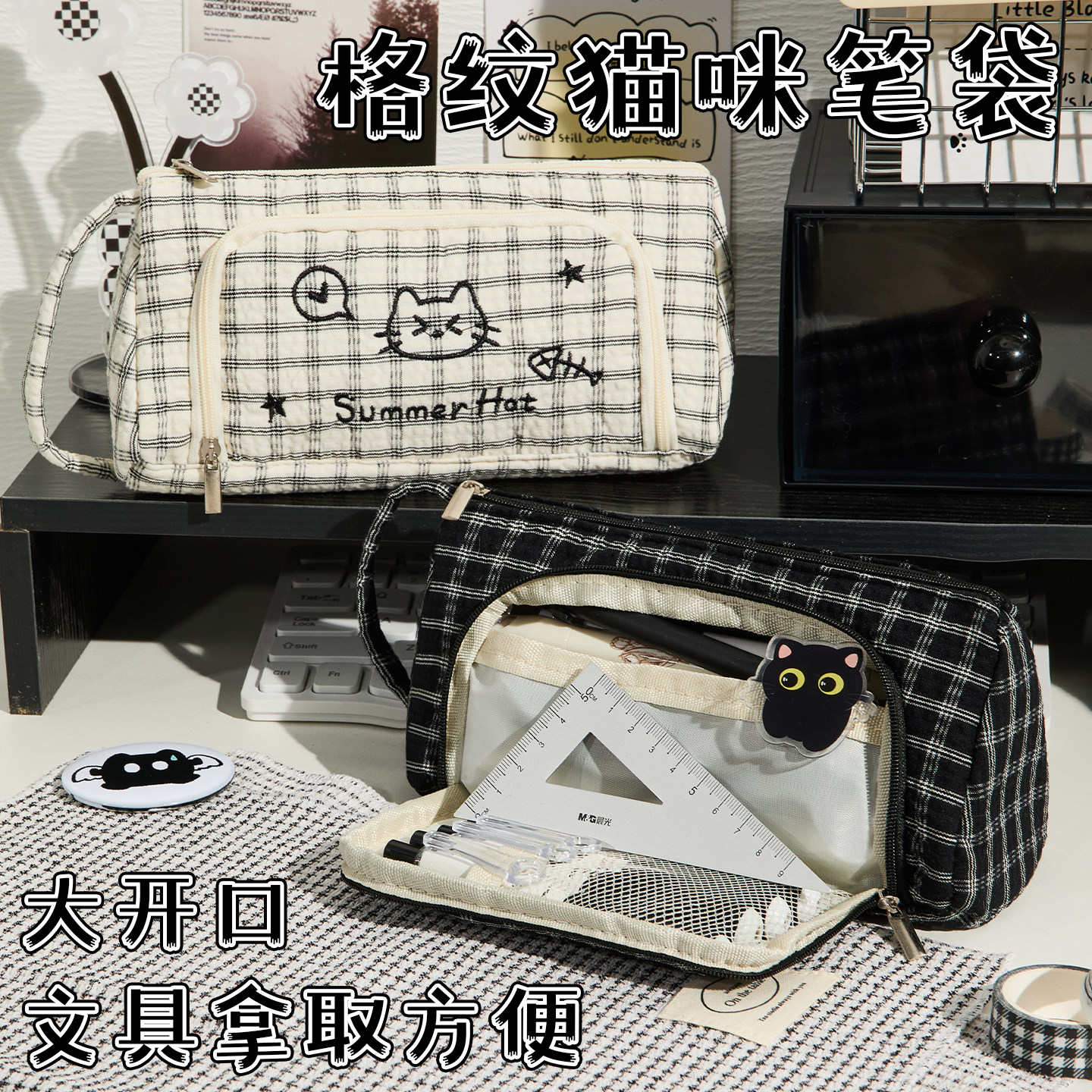#格纹小猫笔袋 #高颜值文具盒 #学生必备 #简约时尚 #INS风