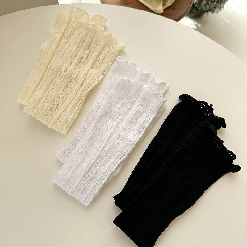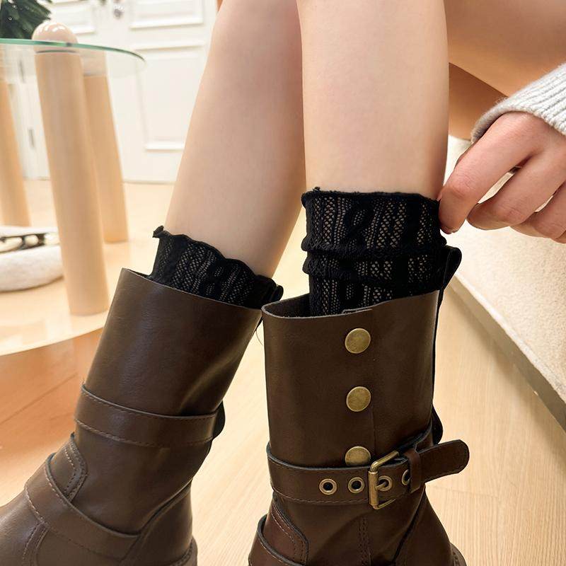 📚 秋冬季显瘦搭配长靴袜套蕾丝堆堆袜奶白色袜筒袜套配靴子修饰腿型