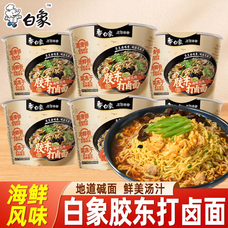 📚 白象方便面桶装打卤面胶东海鲜鲜美汤汁浓郁冲泡面条肉香汤鲜味厚
