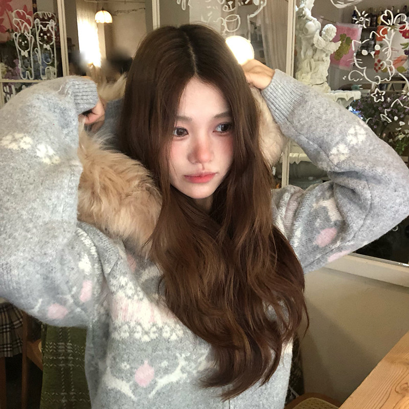 可拆卸女款尔岛针织衫毛领