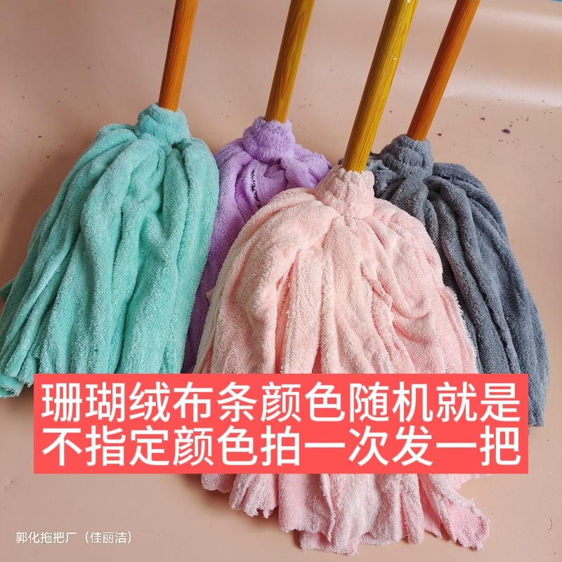 📚 纤维木杆拖把圆头毛巾墩布长条棉线老式传统手拧吸水家用地板普通