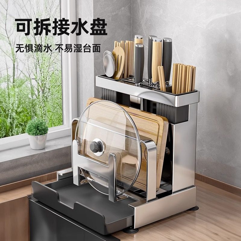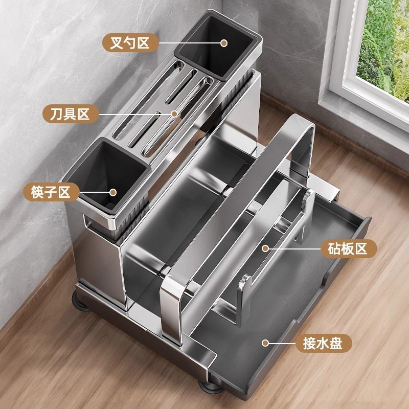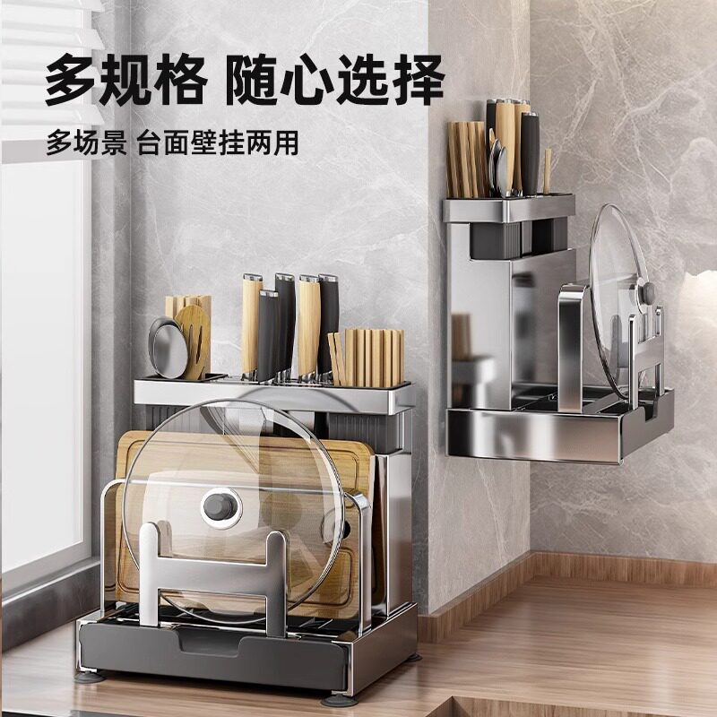 📚 厨房刀架置物架多功能刀具筷子笼菜板一体壁挂式收纳架筷筒砧板架
