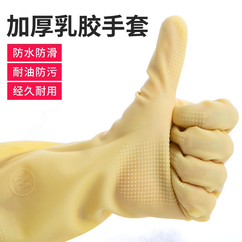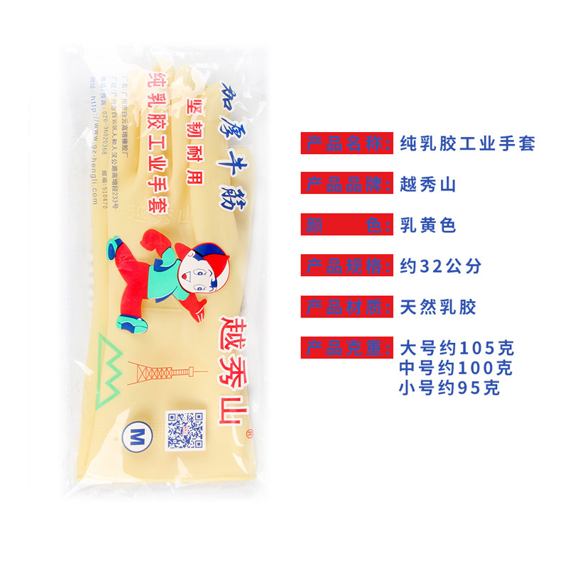📚 越秀山乳胶手套牛筋胶皮厨房居家洗碗加厚工业耐酸碱橡胶皮黄色