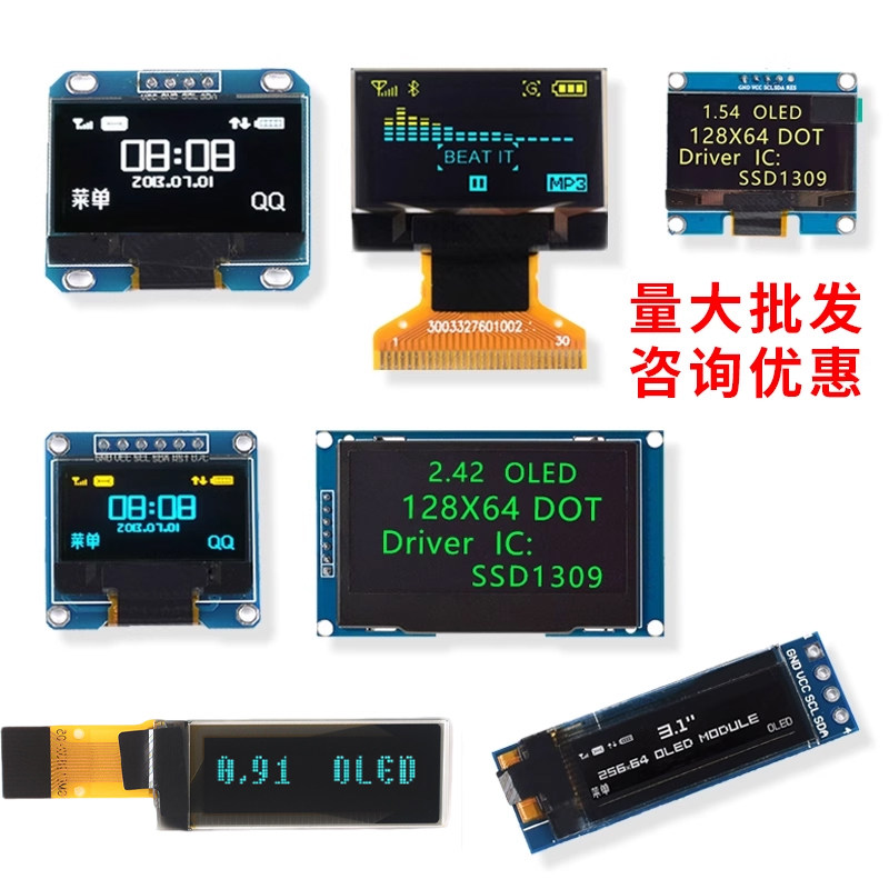 📚 0.96寸OLED显示屏模块0.91 1.3寸液晶屏4/6/7针 12864屏 IIC/SPI