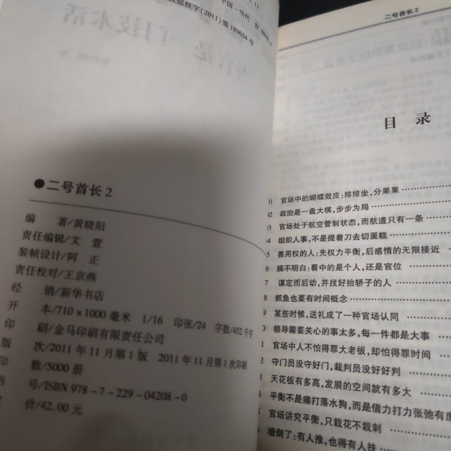 📚 正版旧书 二号首长2:当官是一门技术活 黄晓阳 著 / 重庆出版社 / 2011-09 /