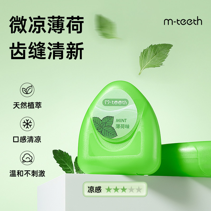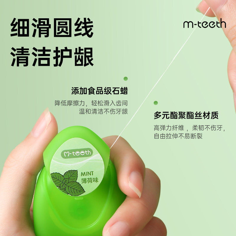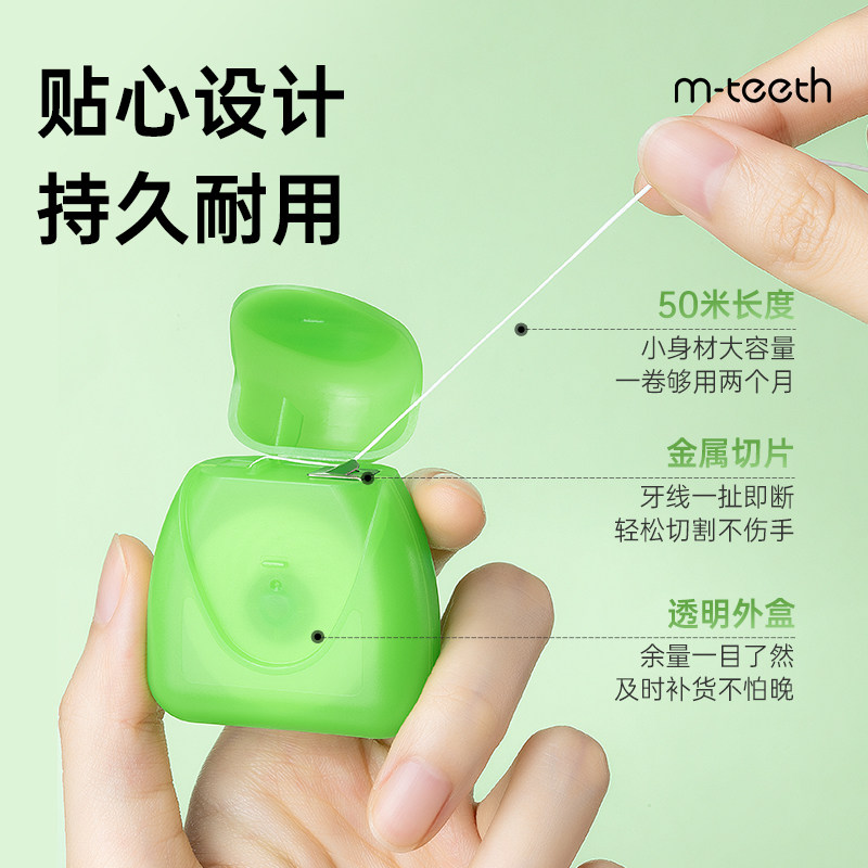 📚 m-teeth萌牙家家庭装超细正畸薄荷牙签剔牙线棉线卷装三角款