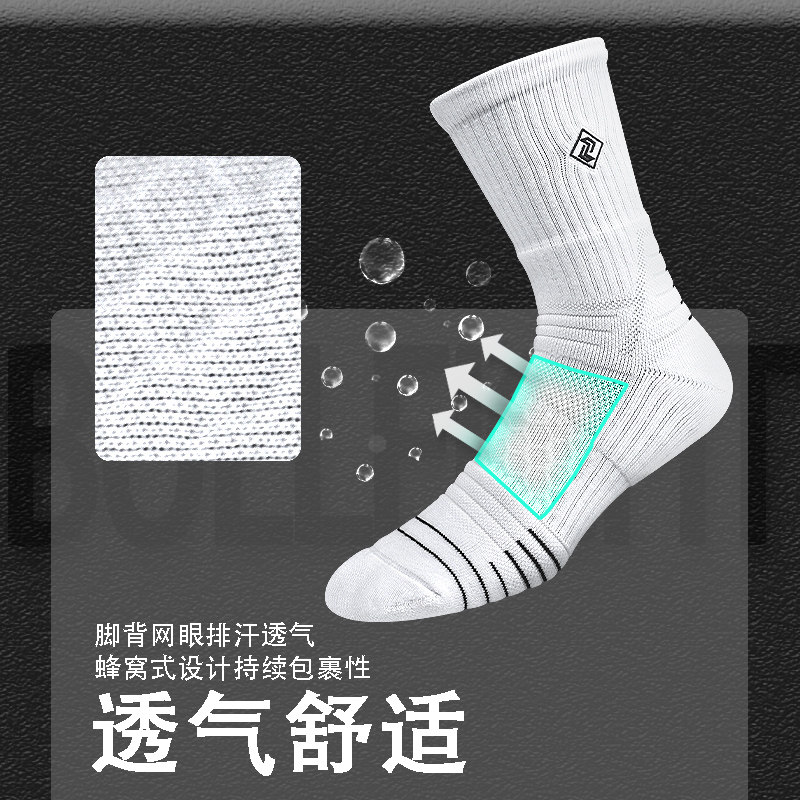 📚 左右力量篮球袜男春夏中筒高帮毛巾底防滑专业实战精英运动袜斗牛