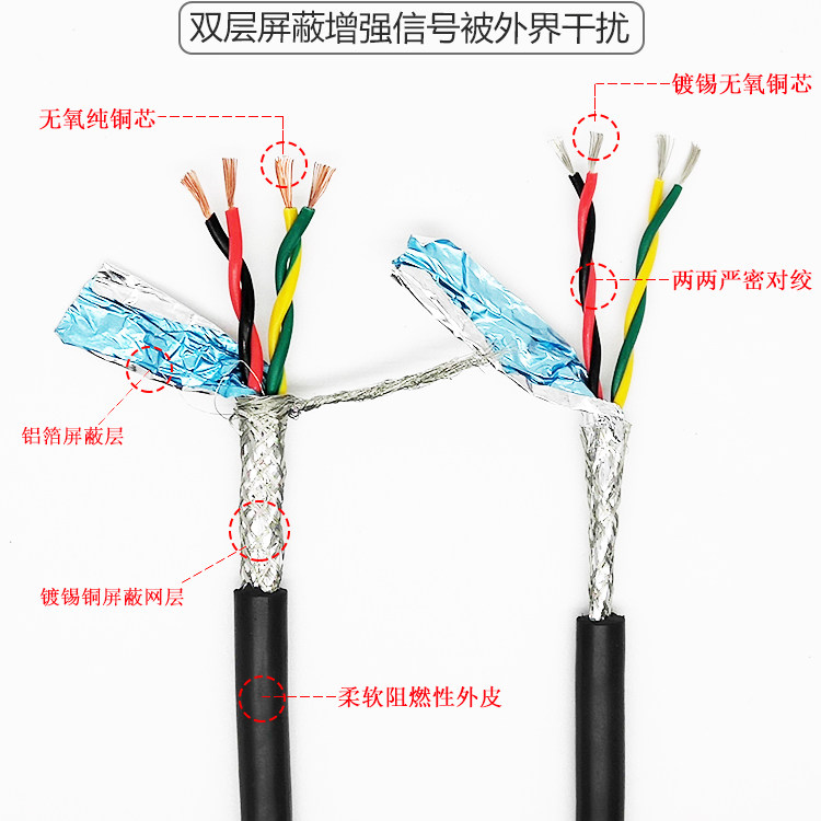 📚 纯铜双绞屏蔽信号线2对绞线RS485通讯RVSP4*0.5 0.75 1.0 1.5软线
