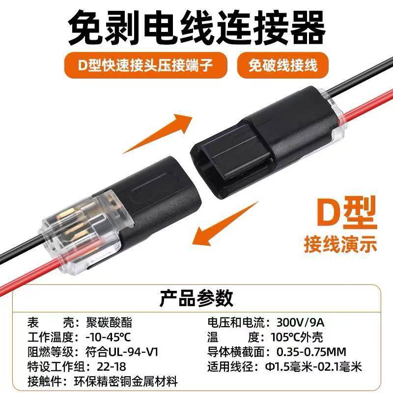 📚 D2互插型免焊接免剥线可拔LED连接器双线互插快速接线端子