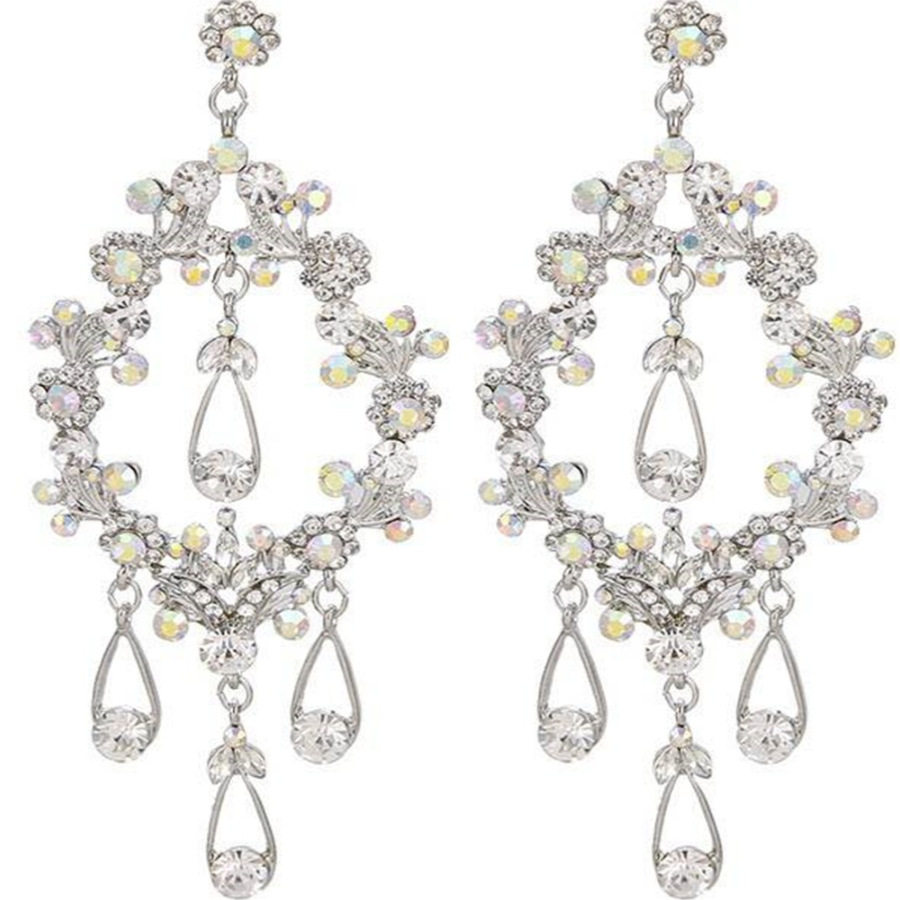 📚 法式复古耳环欧美夸张花朵流苏长款耳饰气质新娘结婚婚纱晨袍饰品