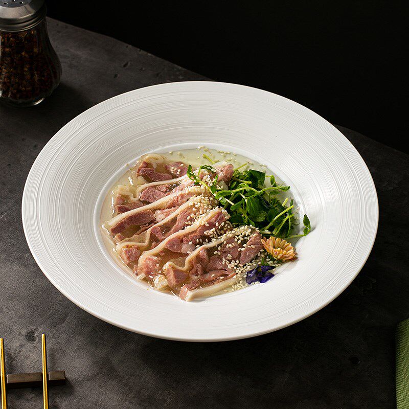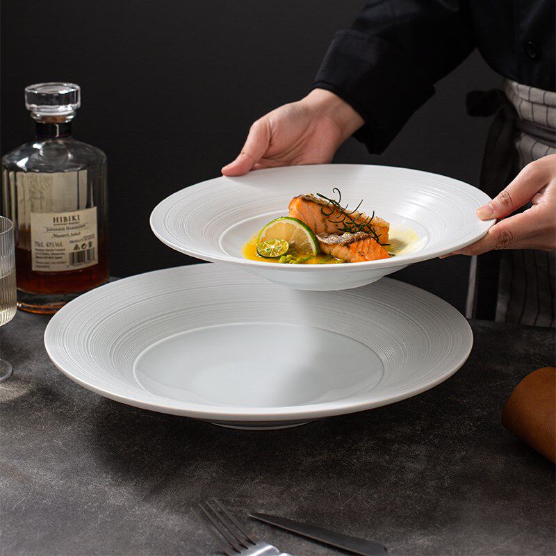 📚 线纹《维宝大圆碗》白色陶瓷盘子菜盘西餐意面盘汤盘酒店餐具