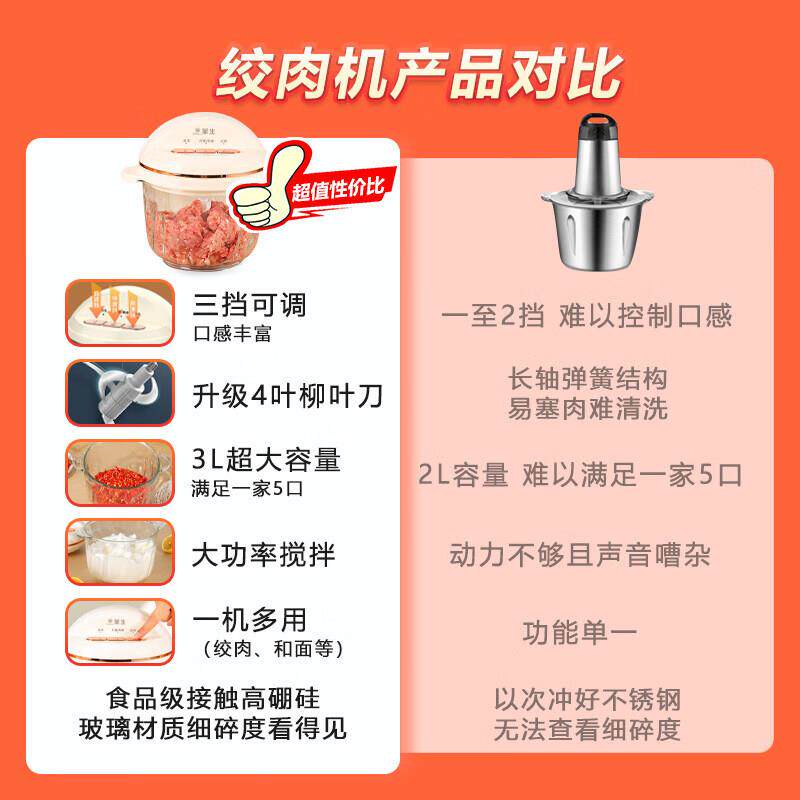 📚 华生绞肉机家用3L升搅肉机多功能碎肉碎菜料理机搅碎机搅拌机电动