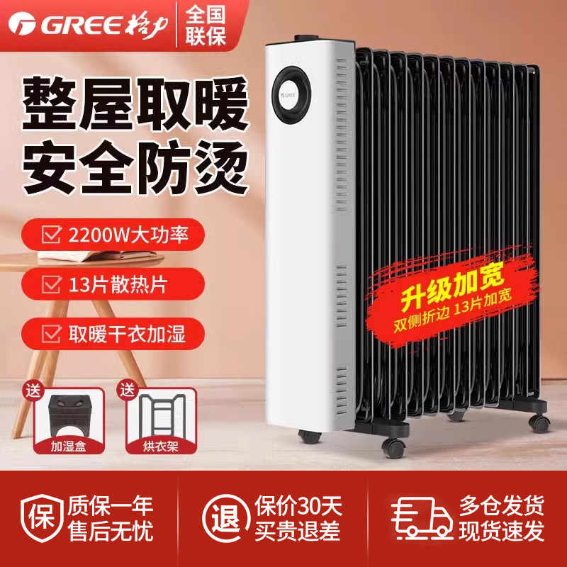 📚 格力13片电热油汀取暖器家用石墨烯制热电暖气油丁酊电暖器烤火炉