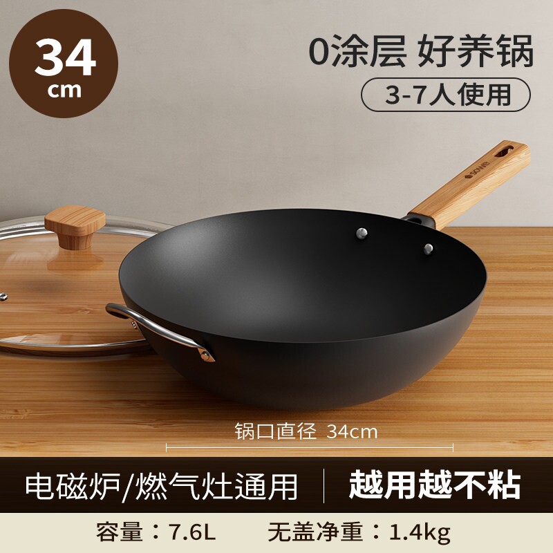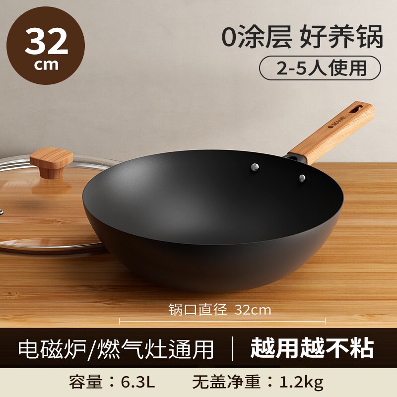 📚 章丘铁锅sowe铁锅炒菜锅传统老式不粘锅无涂层炒锅电磁燃炒锅家用