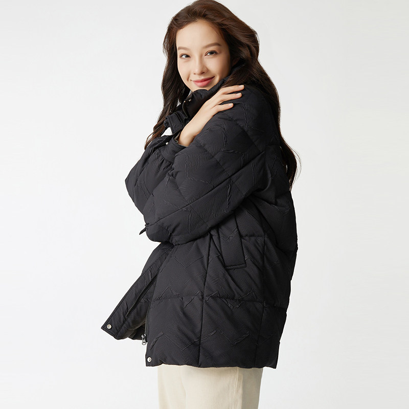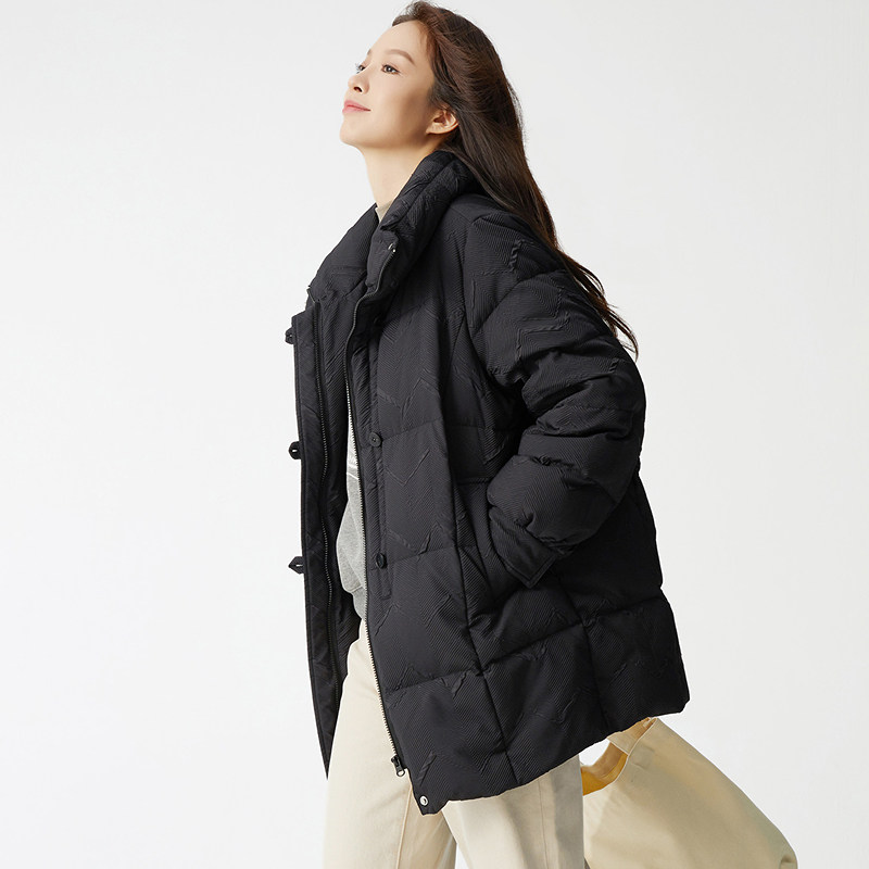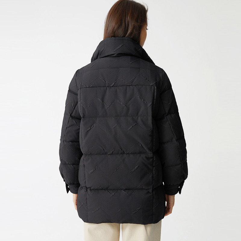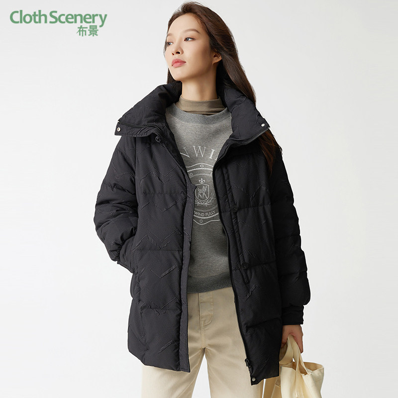 📚 布景羽绒服女中长款冬季新品简约宽松白鸭绒保暖黑色外套厚款1475