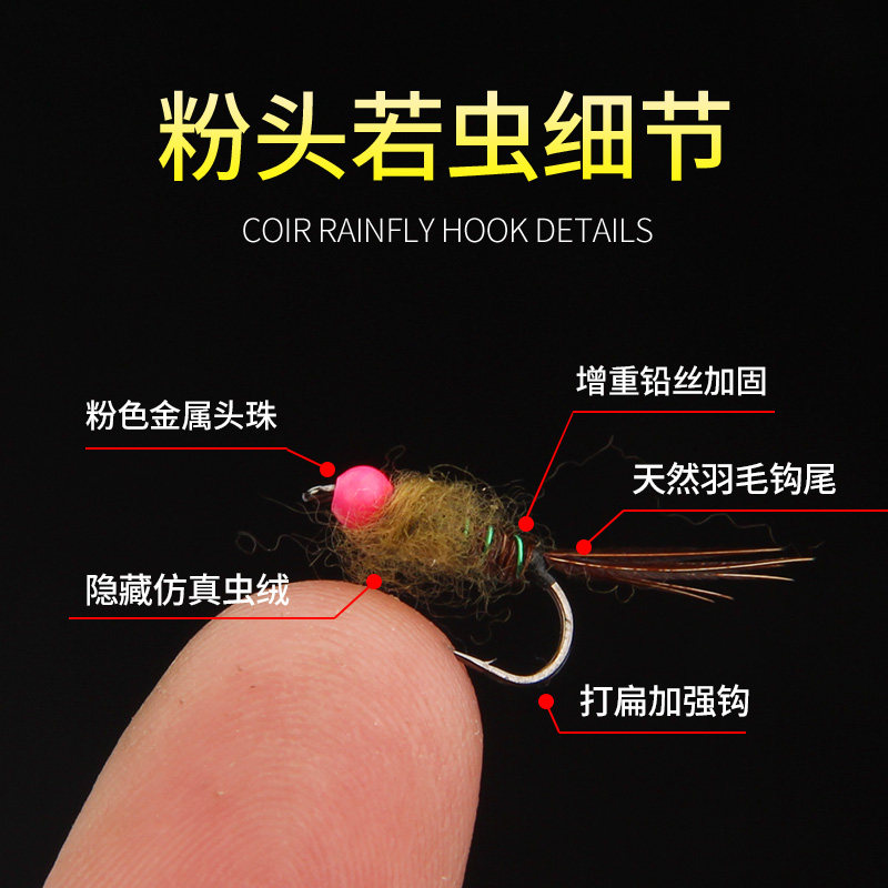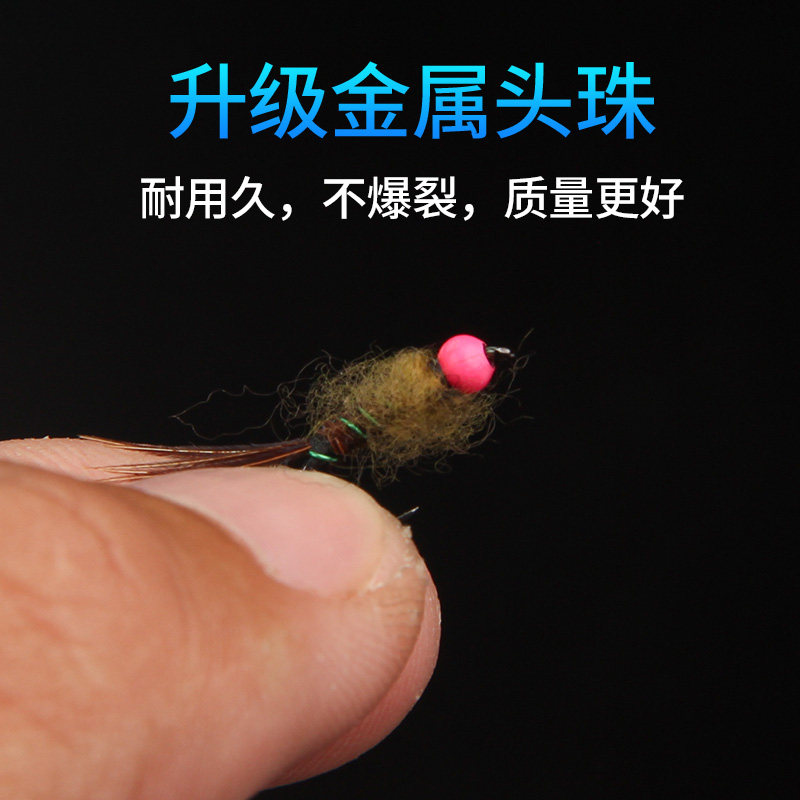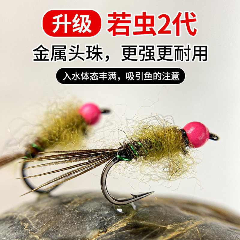 📚 小柒家新款飞蝇钩粉头仿生若虫二代金属头珠马口白条套装路亚假饵