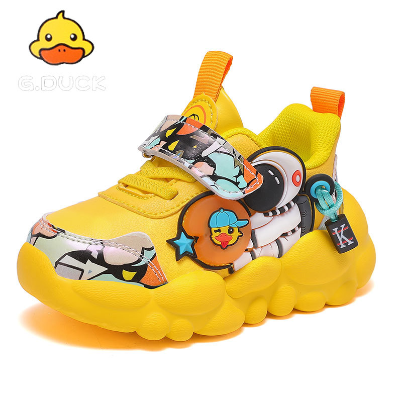 📚 小黄鸭男童皮面运动鞋防滑2026春季新款中童儿童网面宝宝学步鞋子